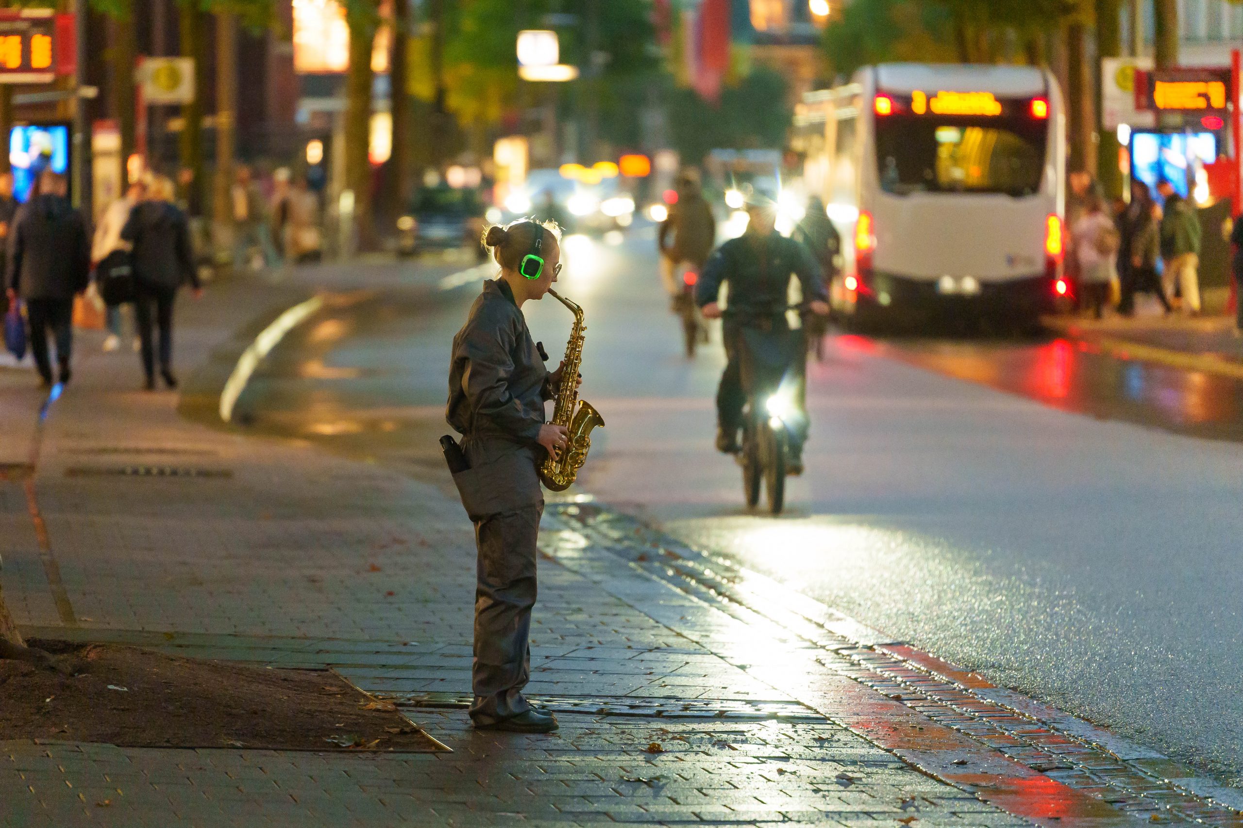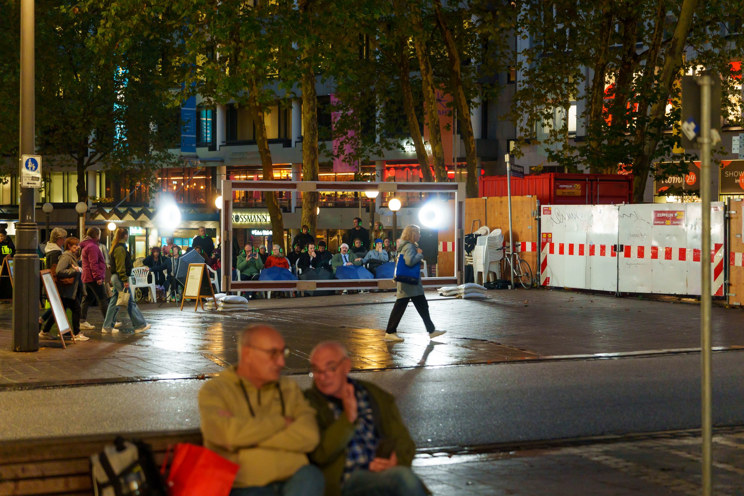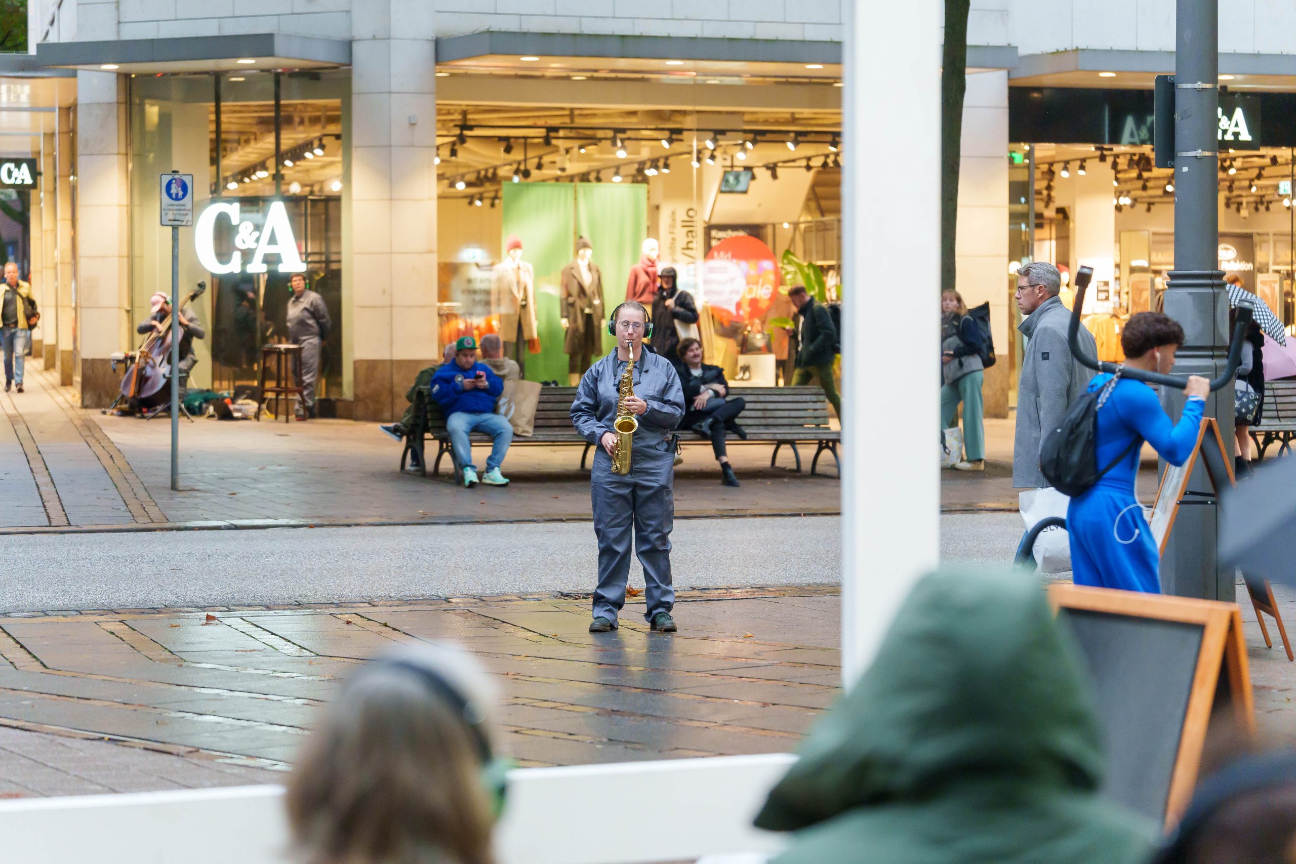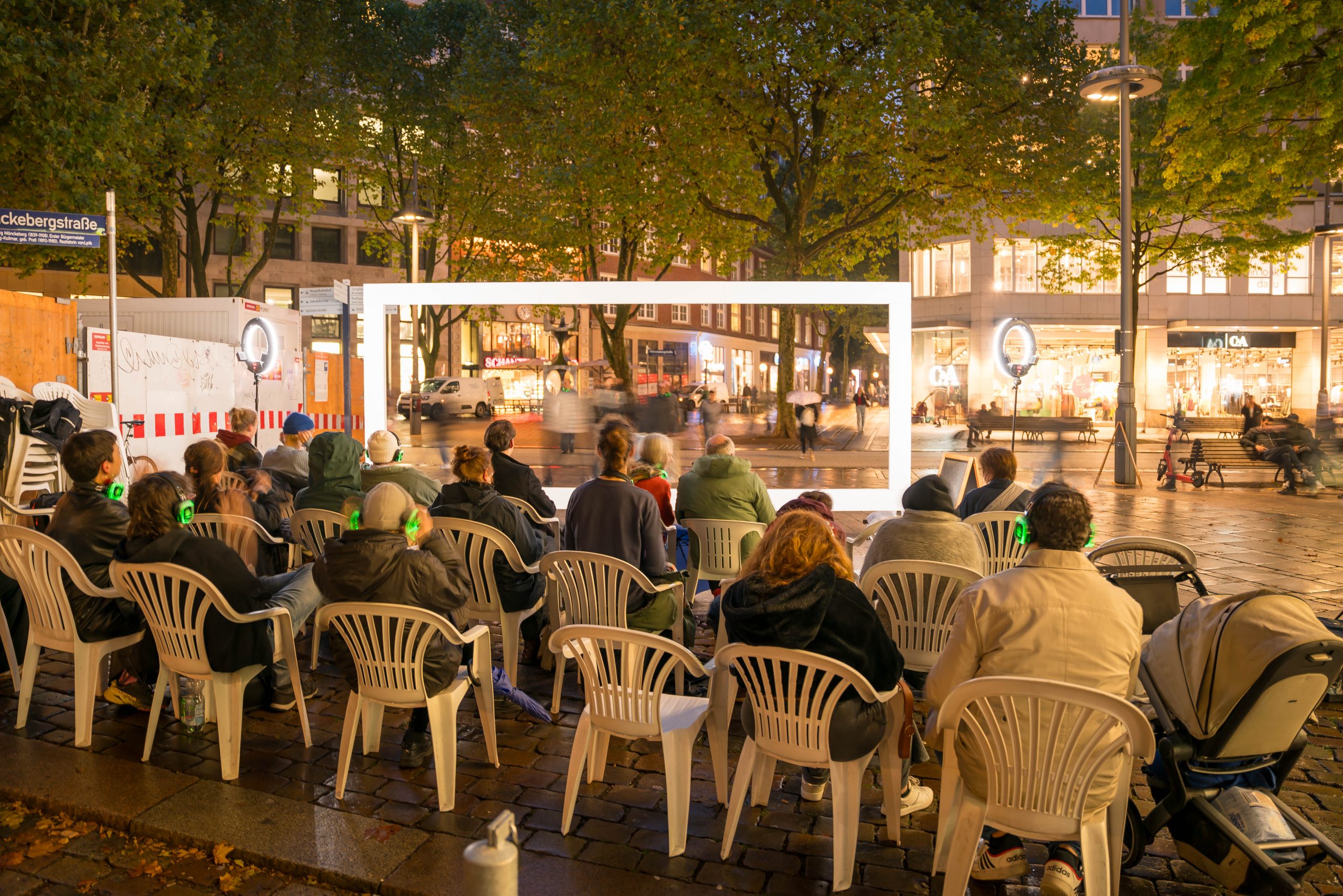 WAR WHISPERS, invites you on a multi-layered sound expedition: against the backdrop of historical architecture, where power and everyday life meet, the public space becomes a listening space. Sounds composed in real time merge with the metropolitan soundscape as the musicians move through the cityscape. At the centre is the haunting voice of poet Etel Adnan, whose text ‘To be in a time of war’ is ‘whispered’ directly into the audience’s ears via headphones. WAR WHISPERS explores the question of how people live in the tension between everyday life and violence. The result is a fragile web of sound that draws the listener into an acoustic hidden object: sometimes close and personal, sometimes overwhelming and alien, between the lived present and the reverberations of wars not far away.