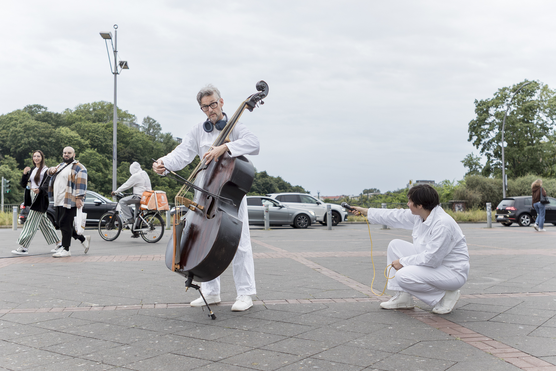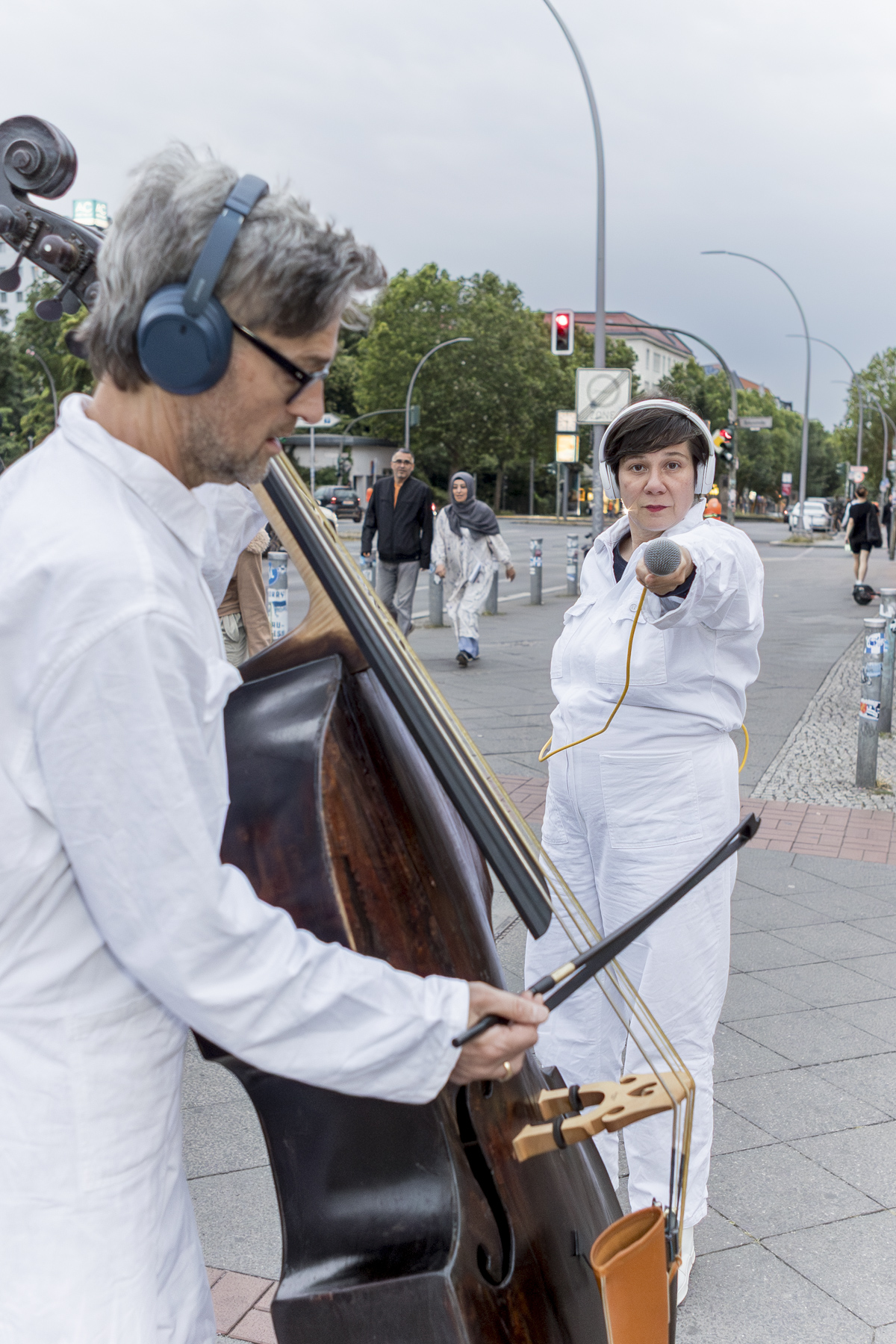 WAR WHISPERS, invites you on a multi-layered sound expedition: against the backdrop of historical architecture, where power and everyday life meet, the public space becomes a listening space. Sounds composed in real time merge with the metropolitan soundscape as the musicians move through the cityscape. At the centre is the haunting voice of poet Etel Adnan, whose text ‘To be in a time of war’ is ‘whispered’ directly into the audience’s ears via headphones. WAR WHISPERS explores the question of how people live in the tension between everyday life and violence. The result is a fragile web of sound that draws the listener into an acoustic hidden object: sometimes close and personal, sometimes overwhelming and alien, between the lived present and the reverberations of wars not far away.